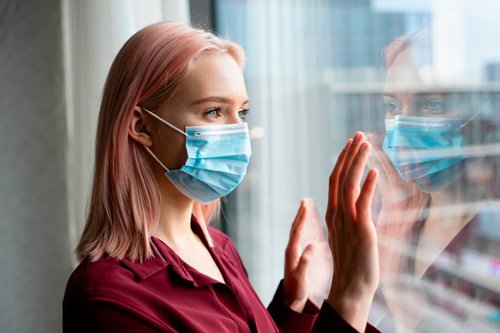 Девушка стоит в медицинской маске